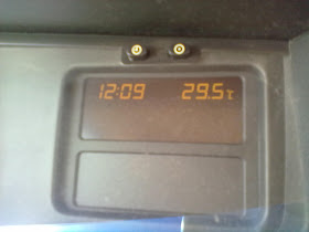5 personer i vår biö utan luftkonditionering... Och ni ser ju temperaturen! Men snart framme i min gamla studiestad:)